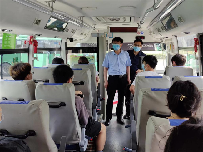 期間,校長梅樂堂、副校長任楓軒實(shí)地察看了送站服務(wù)現(xiàn)場,并與離校學(xué)生進(jìn)行親切交談。梅樂堂叮囑同學(xué)們返程期間要注意安全,做好個(gè)人防護(hù),到家后及時(shí)向輔導(dǎo)員老師報(bào)告。同時(shí)希望同學(xué)們要按照教學(xué)計(jì)劃,認(rèn)真做好線上網(wǎng)課學(xué)習(xí),完成既定課時(shí)。最后,梅樂堂還祝愿同學(xué)們一路順風(fēng),平安到家。