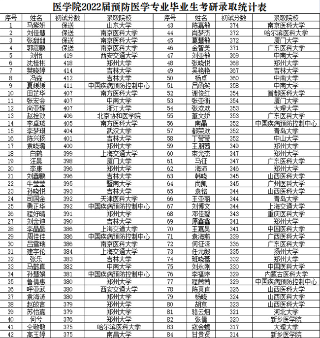 辛勤耕耘育桃李,累累碩果寫春秋。河南中醫(yī)藥大學(xué)醫(yī)學(xué)院2022屆預(yù)防醫(yī)學(xué)專業(yè)學(xué)生取得的喜人成績(jī),是同學(xué)們發(fā)奮苦讀、踏實(shí)努力、辛勤付出的收獲,也是醫(yī)學(xué)院長(zhǎng)期以來(lái)狠抓學(xué)風(fēng)建設(shè)、強(qiáng)化“三全育人”、重視人才培養(yǎng)的結(jié)果。醫(yī)學(xué)院將進(jìn)一步落實(shí)立德樹(shù)人根本任務(wù),不斷創(chuàng)新工作思路,為學(xué)生成長(zhǎng)成才、實(shí)現(xiàn)青春夢(mèng)想提供堅(jiān)實(shí)保障。(孫慧娟)