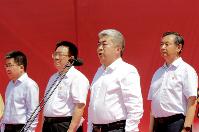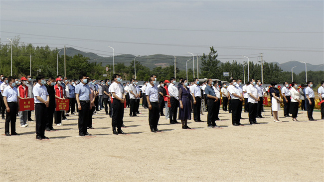 主席臺領(lǐng)導(dǎo)共同為項(xiàng)目建設(shè)奠基培土。