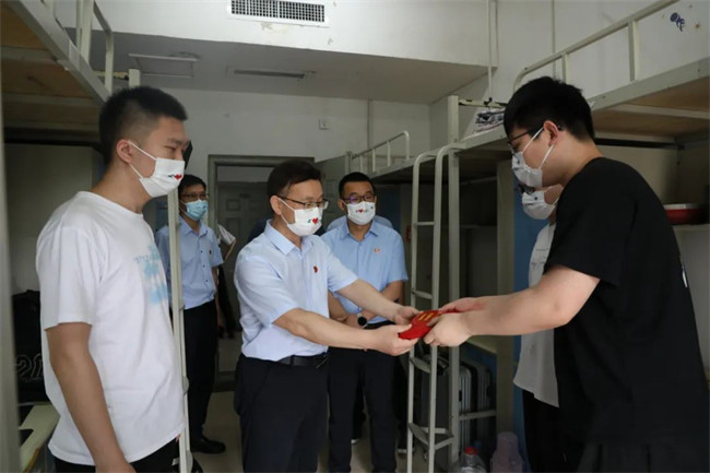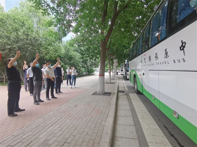學(xué)校黨委書記楊義波、黨委副書記、副校長宗萬偉登上“愛心專車”為畢業(yè)生送行,還特別為畢業(yè)生送上愛心防疫包和消暑飲品,在炎熱夏日讓同學(xué)們感受到鄭州電力高等?茖W(xué)校的關(guān)心和關(guān)愛。楊義波一行與同學(xué)們相互揮手道別,祝愿大家一路平安,前程似錦,囑托同學(xué)們有時間;“家”看看,并表示母校的大門隨時為他們敞開。