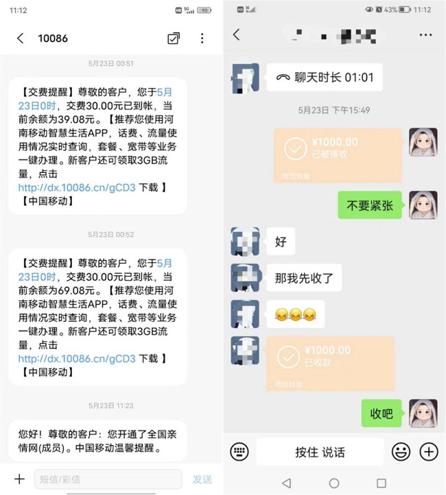 副書記知道這件事情后,非常感動(dòng),又給張師傅充了100元話費(fèi)表示感謝。