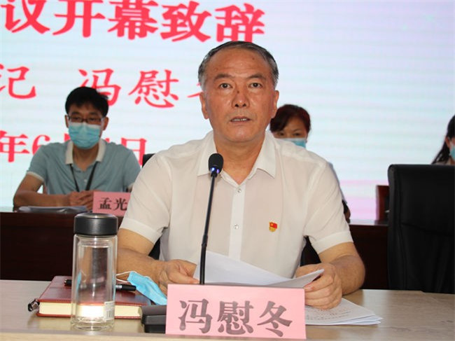 在莊嚴(yán)的國歌中,大會拉開帷幕。黨委書記馮慰冬致開幕詞,韓兵代表洛陽市教科文衛(wèi)體工會致辭。