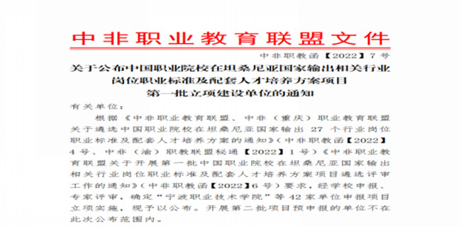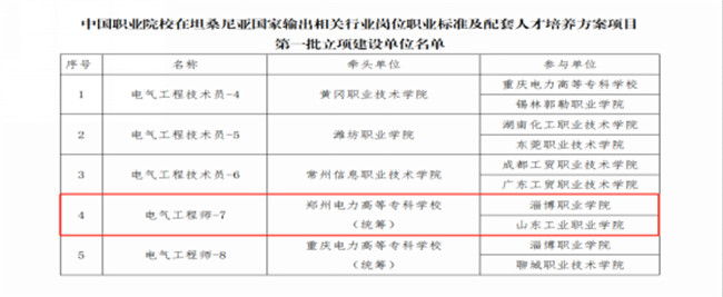 中新河南網(wǎng)6月9日電(李安杰) 近日,中非職業(yè)教育聯(lián)盟公布了中國職業(yè)院校在坦桑尼亞國家輸出相關行業(yè)崗位職業(yè)標準及配套人才培養(yǎng)方案項目第一批立項建設單位評審結果。鄭州電力高等?茖W校電氣工程師崗位標準及配套人才培養(yǎng)方案成功入選第一批立項建設單位名單。