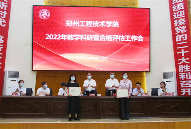 中新河南網(wǎng)6月15日電 為進(jìn)一步落實(shí)省委“能力作風(fēng)建設(shè)年”活動(dòng),深入推進(jìn)“河南省本科高校課堂教學(xué)質(zhì)量提升年專項(xiàng)行動(dòng)”,根據(jù)學(xué)校黨委關(guān)于“能力作風(fēng)建設(shè)年”活動(dòng)的總體安排,6月13日,鄭州工程技術(shù)學(xué)院在英才校區(qū)明德樓A座學(xué)術(shù)報(bào)告廳召開了2022年教學(xué)科研暨合格評估工作會(huì)。全體校領(lǐng)導(dǎo)、學(xué)校各單位負(fù)責(zé)人、各學(xué)院黨政負(fù)責(zé)人、教學(xué)副院長(教學(xué)臨時(shí)負(fù)責(zé)人)、教學(xué)科研辦公室主任、教務(wù)處、科技處、評估督導(dǎo)處全體人員、獲獎(jiǎng)教師代表等參加了會(huì)議。會(huì)議由黨委副書記、工會(huì)主席蘇煒主持。