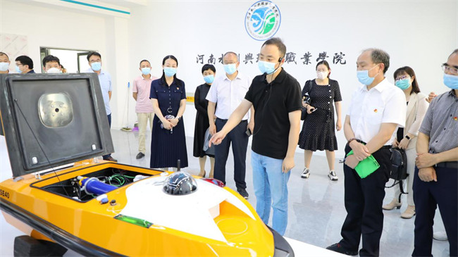 中新河南網(wǎng)6月15日電 6月14日上午,省水利廳到河南水利與環(huán)境職業(yè)學(xué)院航空港校區(qū)開(kāi)展2022年全國(guó)科技活動(dòng)周活動(dòng),實(shí)地察看了學(xué)校新校區(qū)建設(shè),觀摩了專(zhuān)業(yè)實(shí)訓(xùn)教學(xué)中水利科技應(yīng)用情況。省水利廳科技與對(duì)外合作處處長(zhǎng)王彥哲、一級(jí)調(diào)研員陳麗、副處長(zhǎng)鄭光大,信息中心主任張明貴,移民安置處副處長(zhǎng)胡廣超等機(jī)關(guān)處室干部職工20余人參加活動(dòng)。