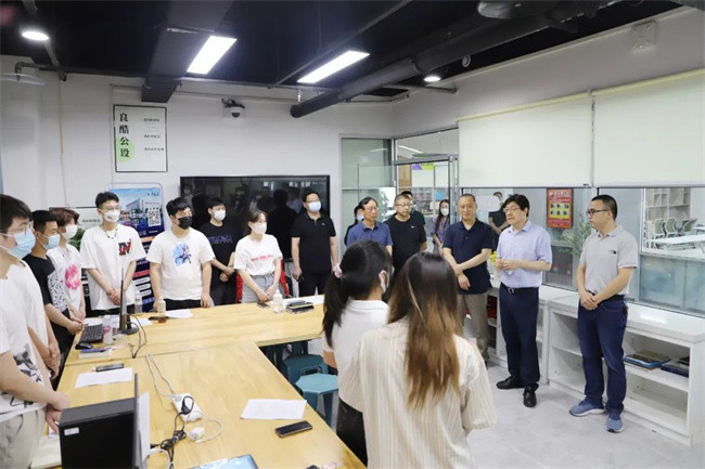 看到學(xué)生在企業(yè)真實(shí)項(xiàng)目創(chuàng)新創(chuàng)業(yè),鄭邦山對學(xué)校產(chǎn)教融合、校企合作的特色做法和線場模式改革取得成效表示贊賞,并勉勵師生珍惜機(jī)會、用好平臺、大膽創(chuàng)新、實(shí)現(xiàn)夢想,早日成長成才。