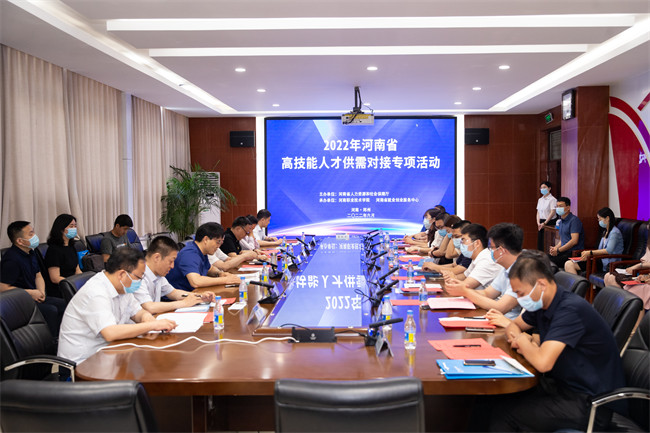 中新河南網(wǎng)6月17日電(馬臻臻) 6月15日,由省人力資源社會保障廳主辦,河南職院和省就業(yè)創(chuàng)業(yè)服務(wù)中心共同承辦的“2022年河南省高技能人才供需專項對接活動”在河南職業(yè)技術(shù)學(xué)院舉行。省就業(yè)創(chuàng)業(yè)服務(wù)中心副主任崔秀池及鄭州市、開封市和洛陽市就業(yè)服務(wù)中心相關(guān)負責(zé)人,以及河南黃河迎賓館、奇瑞汽車河南有限公司和格力電器(洛陽)有限公司等10家企業(yè)代表參加活動。校長梅樂堂出席活動并致辭,工會主席夏喜利主持活動。