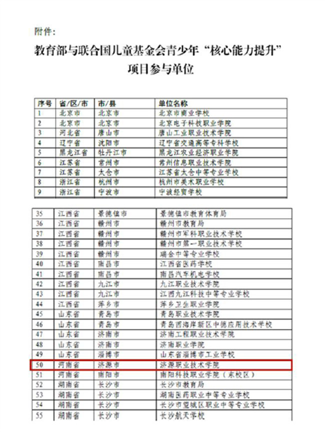 濟(jì)源職院入選教育部與聯(lián)合國(guó)兒童基金會(huì)項(xiàng)目參與單位
