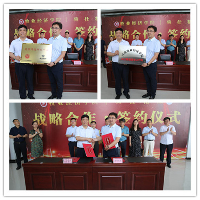 楊寶進與楊俊濤代表校地雙方簽署了共建“鄉(xiāng)村振興服務(wù)中心”合作協(xié)議,楊寶進與河南騎仕精釀啤酒有限公司董事長劉元昌代表校企雙方簽署戰(zhàn)略合作協(xié)議,并為公司授予“河南牧業(yè)經(jīng)濟學(xué)院精釀啤酒研發(fā)中心”和“河南牧業(yè)經(jīng)濟學(xué)院博士工作站”牌匾。