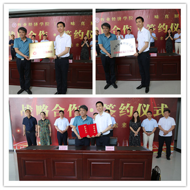 楊國宇與河南三味真廚食品有限公司總經(jīng)理劉瑞峰代表校企雙方簽署“預(yù)制菜肴品質(zhì)提升、新產(chǎn)品開發(fā)及新型加工技術(shù)研究”合作協(xié)議,并為公司授予“河南牧業(yè)經(jīng)濟學(xué)院預(yù)制菜肴研發(fā)中心”和“河南牧業(yè)經(jīng)濟學(xué)院博士工作站”牌匾。