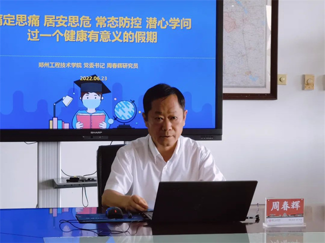 中新河南網(wǎng)6月24日電 6月23日上午,鄭州工程技術(shù)學(xué)院黨委書記周春輝以《痛定思痛 居安思危 常態(tài)防控 潛心學(xué)問 過一個(gè)健康有意義的假期》為題,為全校師生上了一堂內(nèi)涵豐富、精彩生動(dòng)的云端防疫抗疫專題思政課。