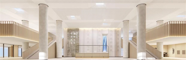 王新奇結(jié)合對國內(nèi)外先進圖書館調(diào)研考察的經(jīng)驗、升達發(fā)展的歷程、未來使用的需求,提出大廳的設(shè)計創(chuàng)意,讓文獻和環(huán)境相映生輝,把圖書館的厚重歷史感和先進科技相融合。他對圓柱造型、Logo燈光、材料質(zhì)量也都提出了明確要求。
