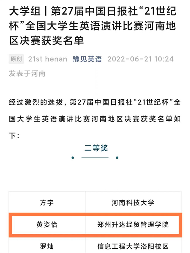 近年來(lái),在鄭州升達(dá)經(jīng)貿(mào)管理學(xué)院學(xué)校領(lǐng)導(dǎo)的大力支持下,外國(guó)語(yǔ)學(xué)院通過(guò)“以賽促學(xué)、以賽促練”,開(kāi)展英語(yǔ)演講比賽、英語(yǔ)翻譯大賽等活動(dòng),不斷增強(qiáng)學(xué)生專(zhuān)業(yè)能力,同時(shí)為學(xué)院專(zhuān)業(yè)建設(shè)不斷提供借鑒和參考,為翻譯專(zhuān)業(yè)的發(fā)展不斷夯實(shí)基礎(chǔ)。