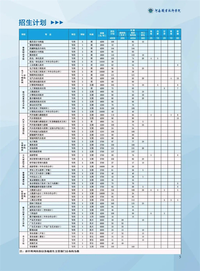 河南職業(yè)技術(shù)學(xué)院招生計劃