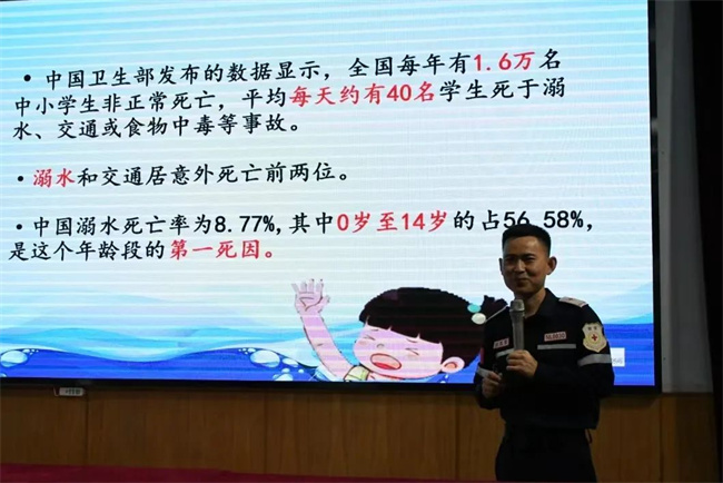 縣紅十字水上救援隊(duì)宣講師劉慶果為全校師生們開展了紅十字防溺水知識(shí)講座,列舉了各地發(fā)生溺水的真實(shí)案例,分析了事故發(fā)生的原因,講解了溺水時(shí)的應(yīng)急處置方法、注意事項(xiàng)等,以此警示學(xué)生們時(shí)刻注意自身安全,防范溺水風(fēng)險(xiǎn)。號(hào)召全體學(xué)生主動(dòng)學(xué)習(xí)和掌握安全常識(shí),積極宣傳所熟知的安全小知識(shí),以力所能及的方式為小伙伴們拉起思想警戒線。