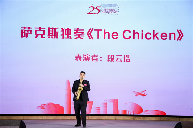 19日晚,香港特區(qū)政府行政長官李家超在慶祝晚宴上視頻致辭,河南省人民政府副秘書長黃東升講話,香港特區(qū)駐河南聯(lián)絡處主任劉錦泉致辭。期間文藝演出環(huán)節(jié),學校藝術學院2022屆優(yōu)秀畢業(yè)生段云浩為大家表演薩克斯獨奏《The Chicken》,精彩的演奏充分展現(xiàn)了該校學子的專業(yè)水準,贏得了與會嘉賓的陣陣掌聲。