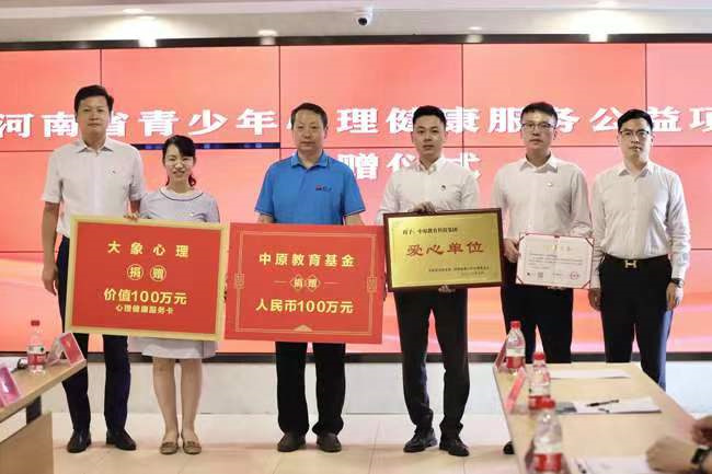 中新河南網(wǎng)7月30日電 7月27日,河南省青少年心理健康服務(wù)公益項目捐贈儀式在鄭州舉行,中原教育基金攜手大象心理向河南省青基會捐贈人民幣100萬元、價值100萬元心理健康服務(wù)卡。