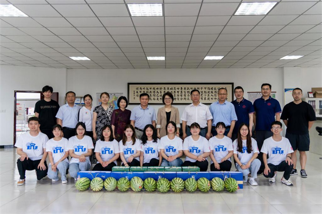 校領(lǐng)導(dǎo)一行首先來到招生辦公室,慰問暑期在校參與招生工作的師生,為師生們帶去了西瓜、牛奶等慰問品。