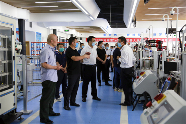 羅谷仁一行先后實地考察了校汽車綜合實訓中心、工業(yè)機器人工程技術中心、虛擬現(xiàn)實工程技術中心、華為ICT學院產教融合實訓基地、生命健康研究院等國家和省市教科研平臺,參觀了新校區(qū)規(guī)劃圖與綜合實訓大樓效果圖。