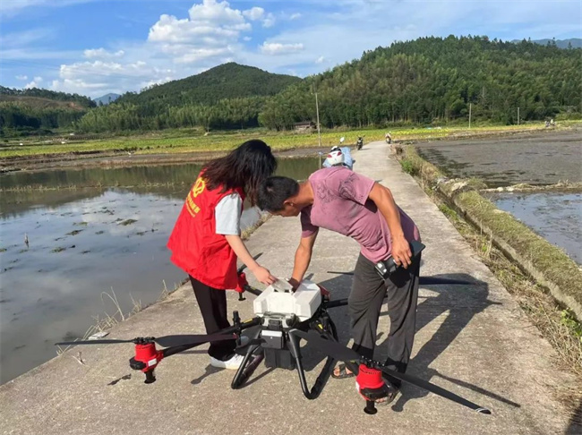 跟隨當(dāng)?shù)胤⻊?wù)站成員了解并參與了無(wú)人機(jī)播種水稻項(xiàng)目