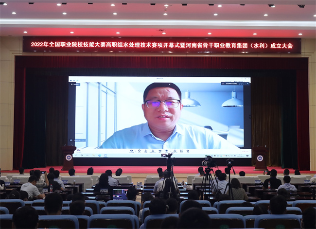 周保平致辭,對(duì)參加此次會(huì)議的各位領(lǐng)導(dǎo)、專家和參賽師生表示歡迎,向長(zhǎng)期以來(lái)關(guān)心、支持和指導(dǎo)學(xué)校發(fā)展的各位領(lǐng)導(dǎo)和嘉賓表示感謝。她簡(jiǎn)要介紹了學(xué)校的辦學(xué)歷史、發(fā)展歷程、辦學(xué)積淀及育人成效,并指出,技能大賽已經(jīng)成為展現(xiàn)職業(yè)教育風(fēng)采、弘揚(yáng)工匠精神和勞動(dòng)風(fēng)尚的重要平臺(tái),為提升技能人才培養(yǎng)質(zhì)量發(fā)揮了重要作用。水處理賽項(xiàng)更是測(cè)試同學(xué)們職業(yè)素養(yǎng)的重要途徑,她希望以本次大賽為契機(jī),大家在互相學(xué)習(xí)中汲取智慧,在取長(zhǎng)補(bǔ)短中合作共贏。希望參賽選手們弘揚(yáng)勞模精神、工匠精神,賽出水平、賽出風(fēng)格,展現(xiàn)新時(shí)代優(yōu)秀技能人才的風(fēng)采。她表示,黃河水院將按照大賽要求,公開公正公平地做好賽事的組織工作,努力將職業(yè)技能大賽辦成一流賽事,優(yōu)質(zhì)賽事。