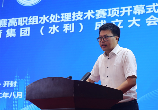 劉震致辭。他指出,開封市堅(jiān)決落實(shí)全國(guó)職教大會(huì)的精神以及省委省政府關(guān)于職業(yè)教育發(fā)展以及職業(yè)技能提升的重要文件精神,大力發(fā)展職業(yè)教育,開展了一系列職業(yè)技能提升的專項(xiàng)行動(dòng),全力打造職業(yè)教育的“開封高地”。借助國(guó)家大力發(fā)展職業(yè)教育和高質(zhì)量推進(jìn)“技能河南”的東風(fēng),開封市人民政府與黃河水院及多個(gè)企業(yè)之間積極構(gòu)建正向企業(yè)命運(yùn)共同體,持續(xù)深化產(chǎn)教融合,為地區(qū)的經(jīng)濟(jì)社會(huì)高質(zhì)量發(fā)展提供了強(qiáng)大的人力支撐。他希望黃河水院能夠繼續(xù)發(fā)揚(yáng)艱苦奮斗的作風(fēng),以重大戰(zhàn)國(guó)家戰(zhàn)略為依托,堅(jiān)持立德樹人根本任務(wù),把學(xué)校建設(shè)成為世界一流的高職院校,并預(yù)祝本次大賽及各項(xiàng)活動(dòng)取得圓滿成功。