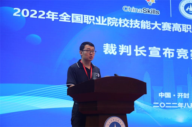 賽項(xiàng)裁判長(zhǎng)、甘肅有色冶金職業(yè)技術(shù)學(xué)院教授陳衛(wèi)東宣布競(jìng)賽規(guī)則