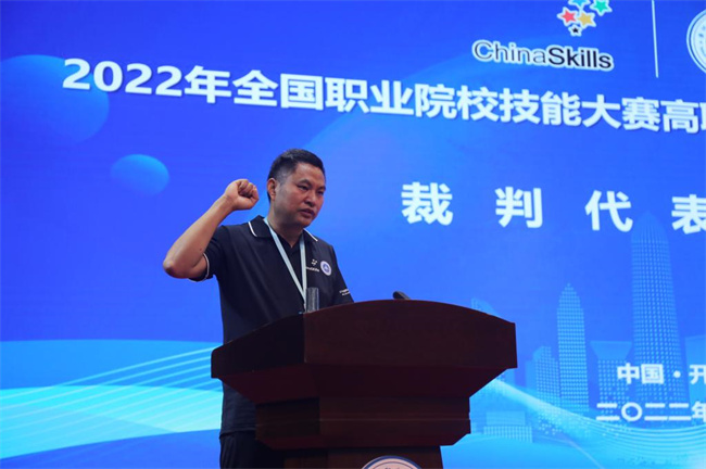 賽項(xiàng)裁判長(zhǎng)、甘肅有色冶金職業(yè)技術(shù)學(xué)院教授陳衛(wèi)東宣布競(jìng)賽規(guī)則。裁判員代表、參賽選手代表分別宣誓。浙江拓峰科技股份有限公司副總經(jīng)理張星耕代表水處理技術(shù)賽項(xiàng)合作企業(yè)致辭。