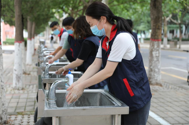 演練前,學(xué)校在行政樓前舉行演練動員會。張金安強(qiáng)調(diào),要通過實(shí)地應(yīng)急演練,熟練掌握和演示各場景下的疫情防控要求和應(yīng)急處置流程,進(jìn)一步檢驗(yàn)和提高學(xué)校疫情防控工作水平和應(yīng)對能力,全力做好各項(xiàng)開學(xué)準(zhǔn)備。