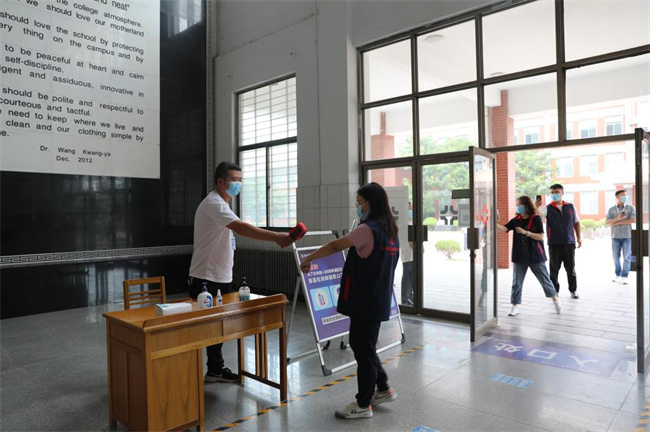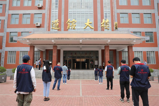 學(xué)校西大門模擬學(xué)生報(bào)到入校