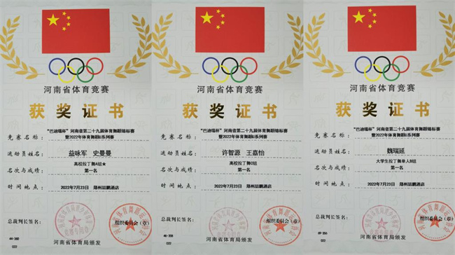 暑假期間,同學(xué)們積極參加各類(lèi)比賽,通過(guò)比賽不斷磨練,提高專(zhuān)業(yè)水平。此次取得的優(yōu)異成績(jī)是同學(xué)們認(rèn)真?zhèn)滟悾炭嘤?xùn)練的收獲,也是該校體育學(xué)院教師團(tuán)隊(duì)無(wú)私奉獻(xiàn)、辛勤付出的體現(xiàn)。在院校領(lǐng)導(dǎo)的大力支持下,師生共同努力下,“升達(dá)體舞”再一次向社會(huì)各界展示出其風(fēng)采和影響力。愿該校體育舞蹈專(zhuān)業(yè)的同學(xué)們,再接再厲!再創(chuàng)輝煌!