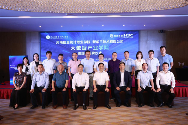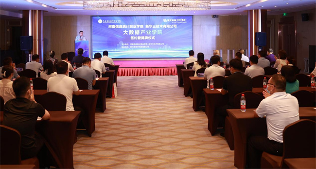 梁景予代表學(xué)院致歡迎辭,向與會(huì)來(lái)賓表示熱烈歡迎。他指出,十四五”時(shí)期是我國(guó)向數(shù)字經(jīng)濟(jì)邁進(jìn)的關(guān)鍵時(shí)期,對(duì)大數(shù)據(jù)產(chǎn)業(yè)發(fā)展提出了新的要求,鼓勵(lì)職業(yè)院校與大數(shù)據(jù)企業(yè)深化校企合作,建設(shè)實(shí)訓(xùn)基地,推進(jìn)專業(yè)升級(jí)調(diào)整,對(duì)接產(chǎn)業(yè)需求,培養(yǎng)高素質(zhì)大數(shù)據(jù)技術(shù)技能人才。河南信息統(tǒng)計(jì)職業(yè)學(xué)院在70余年的辦學(xué)過(guò)程中注重加強(qiáng)統(tǒng)計(jì)專業(yè)建設(shè),形成了大數(shù)據(jù)、人工智能、物聯(lián)網(wǎng)、統(tǒng)計(jì)和市場(chǎng)調(diào)查等多個(gè)專業(yè)的相互支撐統(tǒng)計(jì)與大數(shù)據(jù)分析專業(yè)群,相信通過(guò)校企雙方強(qiáng)強(qiáng)聯(lián)手,發(fā)揮學(xué)院專業(yè)積累和新華三技術(shù)優(yōu)勢(shì),必定打造高水平大數(shù)據(jù)產(chǎn)業(yè)學(xué)院。