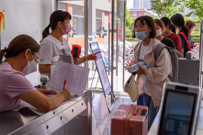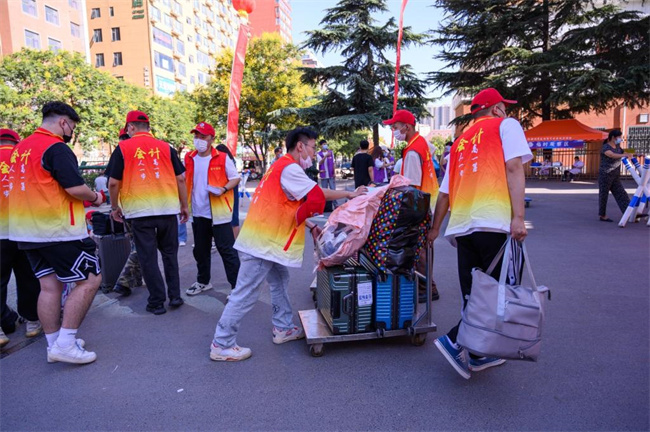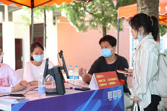 為了確保2022級迎接新生工作順利有序進(jìn)行,學(xué)校在鄭州火車站西廣場設(shè)立了新生接待處,組織了多輛大巴往返車站迎接新生。在校西大門南側(cè)200米設(shè)立家長休息區(qū)。學(xué)生進(jìn)校后即可刷臉注冊,帶著行李,乘坐免費擺渡車前往宿舍。學(xué)生在線上完成交費后,通過刷臉注冊,就可以進(jìn)入已經(jīng)在線上選好的宿舍,操作非常便捷。學(xué)校數(shù)字化迎新系統(tǒng)運行幾年來,各項優(yōu)化措施大大減少了學(xué)生手續(xù)辦理過程,實現(xiàn)了“讓數(shù)據(jù)多跑路,讓學(xué)生少跑腿”。