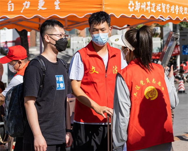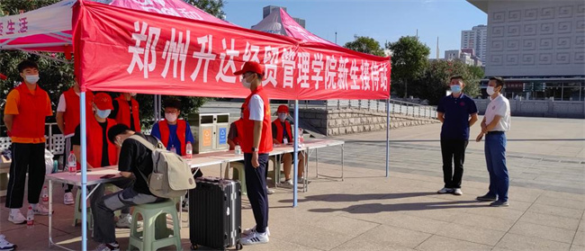 學(xué)校大門口,這時大批學(xué)生已陸續(xù)到來,各學(xué)院的接待點也都忙碌起來,隨處可以看到黨、團(tuán)志愿服務(wù)隊,在忙著幫新生拉行李。這里最辛苦的要數(shù)保衛(wèi)科和健康中心的工作人員,他們早上六點多就到崗了。因為處于疫情防控期間,健康中心專門在大門口設(shè)置了疫情檢測點和隔離點。保衛(wèi)科的工作人員不僅要把好新生的安全進(jìn)校關(guān),還要負(fù)責(zé)對來送學(xué)生的車輛安排,指揮現(xiàn)場秩序,忙的滿頭是汗。學(xué)校工作人員和志愿者為新生提供的熱情、周到服務(wù),受到了新生和家長的交口稱贊,令他們感受到升達(dá)園的親切和熱情。
