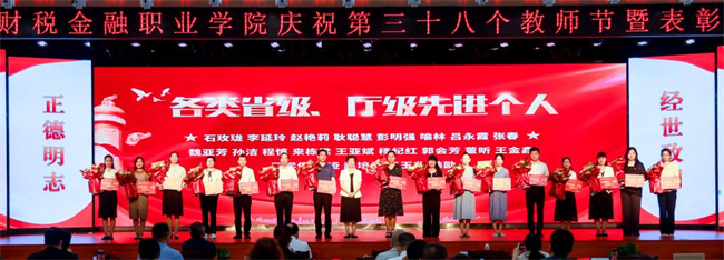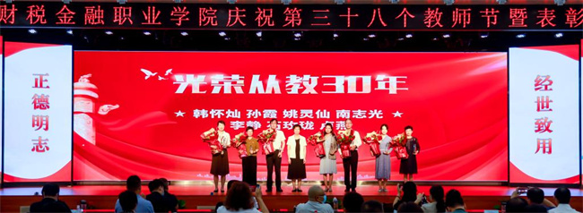 為表彰先進(jìn)、樹立典型,大會(huì)對(duì)在學(xué)生管理、志愿服務(wù)、人才培養(yǎng)等方面取得優(yōu)異成績(jī)的個(gè)人進(jìn)行了表彰。大會(huì)還為從教30年的教師頒發(fā)了“光榮從教30年”紀(jì)念杯。青年教師王金鑫作為教師代表分享了從教以來(lái)的體會(huì)和收獲,教務(wù)處長(zhǎng)耿聰慧帶領(lǐng)廣大教師重溫了教師誓詞。
