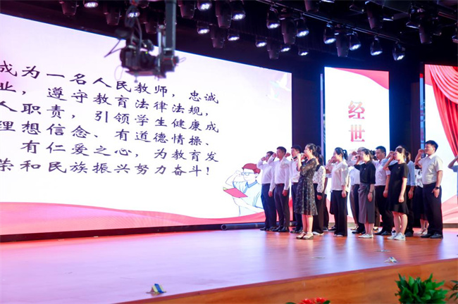 教務(wù)處長(zhǎng)耿聰慧帶領(lǐng)廣大教師重溫了教師誓詞