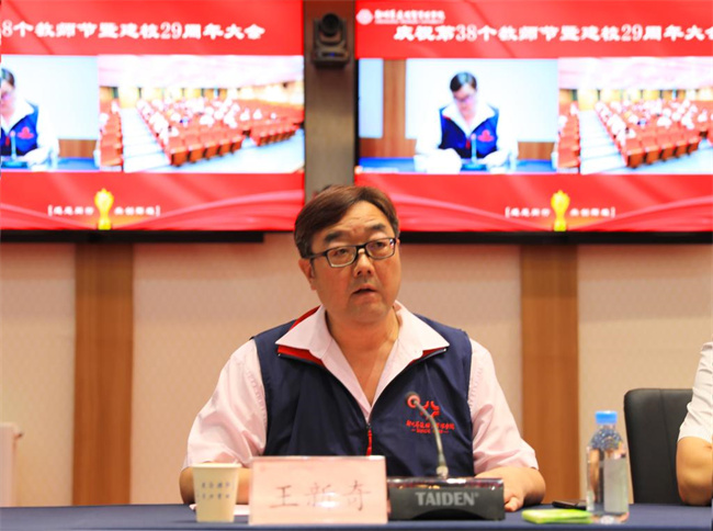 大會在莊嚴(yán)的《中華人民共和國國歌》中拉開帷幕。王新奇代讀王淑芳董事長賀辭。王淑芳董事長在賀辭中向全體教職員工表示親切的慰問和節(jié)日的祝福!她在賀詞中說,全體教師要努力擔(dān)當(dāng)起新時代“為黨育人,為國育才”的神圣使命,以“立德樹人”為根本任務(wù),按照“四有”好老師的標(biāo)準(zhǔn),努力拼搏,不斷進(jìn)取,為黨和人民事業(yè)作出新的更大的貢獻(xiàn)。她對全體教師提三點希望:一是希望廣大教師要嚴(yán)謹(jǐn)治學(xué),持續(xù)重視教育教學(xué)質(zhì)量。走到天邊,質(zhì)量第一。要把創(chuàng)辦人的辦學(xué)理念和“五好”辦學(xué)原則,融入到高質(zhì)量人才培養(yǎng)全過程,要認(rèn)真做好、積極參與學(xué)校審核評估、專碩點培育等重大工作,提升辦學(xué)層次,不斷提高社會影響力和招生競爭力,更好的推進(jìn)學(xué)校高質(zhì)量發(fā)展。二是希望廣大教師要為人師表,牢固樹立良好師德師風(fēng)。學(xué)校要建立長效機制,加強教育培訓(xùn),營造優(yōu)良風(fēng)氣。每位教職工都要做學(xué)生的表率、做老師的表率、做社會的表率,要按照“四有”好老師的標(biāo)準(zhǔn),以赤誠之心、奉獻(xiàn)之心、仁愛之心投身教育事業(yè)。三是希望廣大教師要熱愛學(xué)校,時刻助力學(xué)校建設(shè)發(fā)展。升達(dá)的建設(shè)和發(fā)展需要所有升達(dá)人的共同努力。讓我們同心同德,共同努力,克服困難,聚精會神干事業(yè),一心一意謀發(fā)展,努力把學(xué)校各項工作推向前進(jìn),努力取得新的更大的成績。