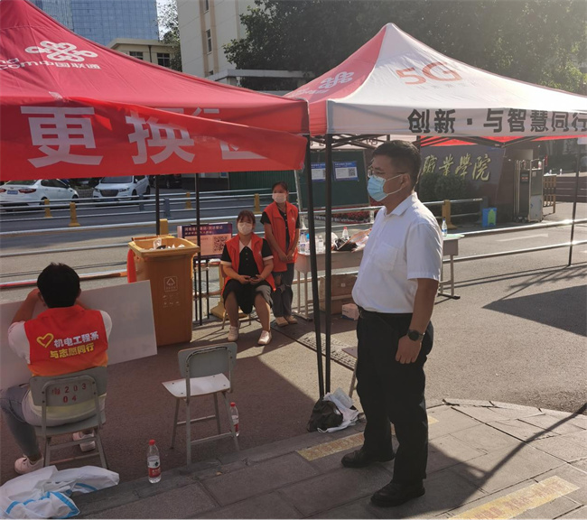 校領(lǐng)導王立正、李廣慧、張凌杰、李連水、惠大眾、黃功學、蔣彥成、張志淮、魏義軍、趙廣杰深入現(xiàn)場指導迎新工作,親切慰問迎新工作人員、學生志愿者和新生。