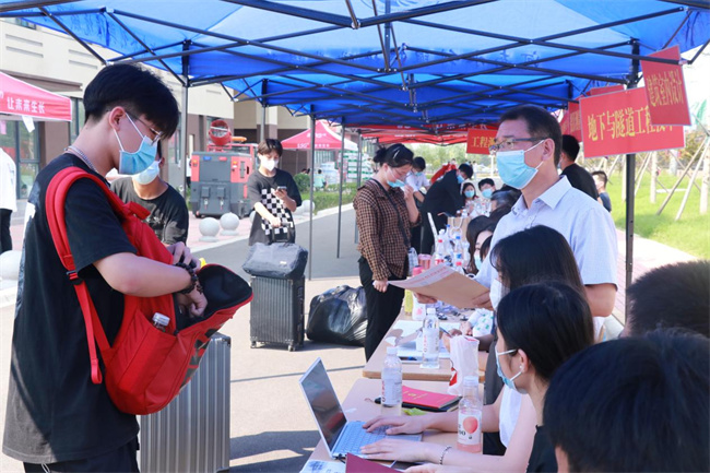學校在地鐵站等交通樞紐設(shè)置了迎新接待點,為新生提供接站、帶路等暖心服務(wù)。