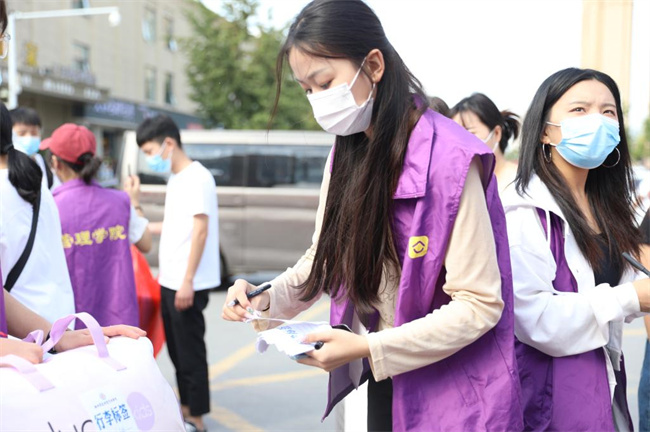 在報(bào)到現(xiàn)場,來自學(xué)校各學(xué)院的“青年志愿者”“黨員志愿者”等,都在忙著幫新生運(yùn)送行李。期間,不斷有巡查工作的校領(lǐng)導(dǎo)與學(xué)生親切交談,各學(xué)院及相關(guān)部門的工作人員也有條不紊的做著接待和解釋工作。學(xué)校還設(shè)置報(bào)到咨詢點(diǎn)、免費(fèi)飲水處和家長接待休息區(qū)等,為新生和家長提供人性化服務(wù)。