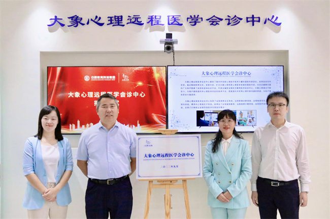 上午11點18分,河南大學教育學部常務副部長李永鑫、鄭州大學第一附屬醫(yī)院精神醫(yī)學科主任郝以輝,中原教育科技集團總經(jīng)理張之涯、大象心理CEO張宗威、大象心理健康研究院院長張玉、大象心理康復醫(yī)院執(zhí)行院長張新華共同為“大象心理遠程醫(yī)學會診中心”揭牌,會診中心正式啟動,會場報以熱烈的掌聲。
