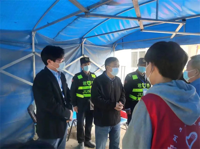 校長盧奎每到一處,都詳細(xì)查看學(xué)生進(jìn)出校園管理情況、門崗值班值守、生活防疫物資儲(chǔ)備等情況,詳細(xì)詢問師生假期動(dòng)向、留校師生管理、學(xué)生返校核查等情況,對(duì)學(xué)校疫情防控和安全穩(wěn)定工作進(jìn)行了深入細(xì)致指導(dǎo)。