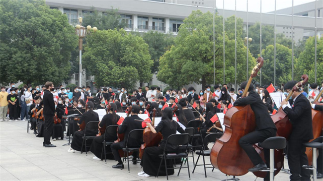 10月2日,在匯文湖畔,音樂學院師生以一首《歌唱祖國》拉開了露天音樂會帷幕,從紅色經(jīng)典到世界名曲,為師生們帶來了一場高雅音樂盛宴,用音樂為祖國母親送上最真摯的祝福,奏響學校朝著第三次創(chuàng)業(yè)目標奮進的樂章。