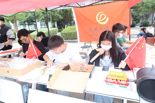 知行廣場上,社團專業(yè)技能展、青春才藝展如期舉行。優(yōu)美瑜伽、勁酷街舞、花樣輪滑、卡丁車體驗、機器人表演、無人機展飛、傳統(tǒng)文化剪紙……各色各樣的學生社團紛紛拿出“看家本領”,展演“炸翻”全場,吸引了大批師生駐足,師生們手持國旗、身貼國旗貼紙,為校園增添了一抹歡慶色彩。