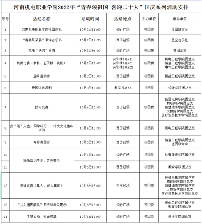 注:如遇特殊天氣,活動時間、地點將進行調整,具體情況以校團委通知為準。