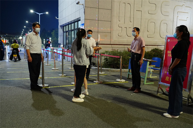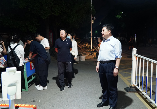 黨委書記、校長(zhǎng)多次深入一線檢查指導(dǎo)工作,全體校領(lǐng)導(dǎo)和中層黨員干部堅(jiān)守工作崗位,落實(shí)“三聯(lián)系制度”,帶班領(lǐng)導(dǎo)和疫情防控工作專班24小時(shí)在校值班值守。二級(jí)學(xué)院領(lǐng)導(dǎo)每天深入學(xué)生宿舍,組織召開學(xué)生座談會(huì)、開展多彩活動(dòng),點(diǎn)亮學(xué)生國慶假期生活,輔導(dǎo)員、班主任全天候入駐學(xué)生公寓,做好學(xué)生思想教育引導(dǎo)工作,增強(qiáng)疫情防控的主動(dòng)性、針對(duì)性和科學(xué)性。考慮到晚上是學(xué)生返校高峰期,中層干部每天到校門口值班值守,協(xié)助查驗(yàn)兩碼一核酸,嚴(yán)格校門管理,避免校門擁堵,確保學(xué)生入校井然有序。