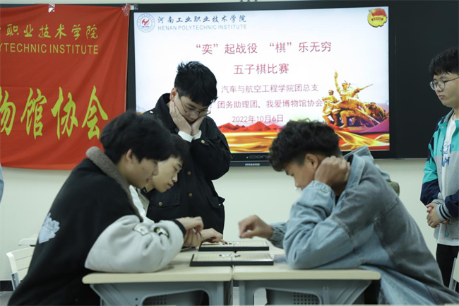 為慶祝中華人民共和國(guó)成立73周年,迎接二十大的到來(lái),堅(jiān)定不移跟黨走,共同邁進(jìn)新征程,河南工業(yè)職業(yè)技術(shù)學(xué)院汽車與航空工程學(xué)院舉辦棋藝大賽。本次棋藝大賽遵循“以棋會(huì)友”的宗旨,回應(yīng)同學(xué)們切磋棋藝的殷切期盼,同時(shí)為棋類愛好者提供一個(gè)相互交流的平臺(tái),弘揚(yáng)時(shí)代旋律的健康校園文化。
