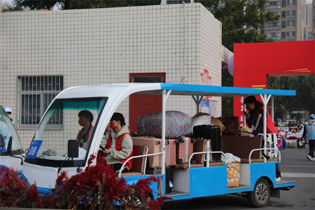 校園擺渡車為新生搬運(yùn)行李