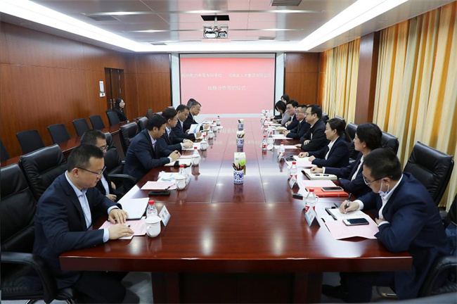 校長楊建華對河南省人才集團有限公司一行的到來表示歡迎,并就學(xué)校的基本情況和近幾年的發(fā)展成就進行了介紹。他指出,學(xué)校謀求高質(zhì)量發(fā)展,關(guān)鍵在人才,借助河南省人才集團的平臺優(yōu)勢,雙方可在高端人才柔性引進、靈活用工、高水平人才庫建設(shè)、學(xué)生就業(yè)創(chuàng)業(yè)、平臺共享共建等方面開展合作,共謀發(fā)展,實現(xiàn)共贏。他表示,通過雙方合作,既能解決在新發(fā)展理念下,學(xué)校人才工作優(yōu)化創(chuàng)新的實際需求,也可為河南省人才集團實現(xiàn)“立足中原、面向全國,建設(shè)具有河南辨識度的重要人才中心”這一愿景提供載體。他相信,雙方合作互惠雙贏,隨著合作深化,工作不斷推進,合作成效逐漸顯現(xiàn),將在河南省教育行業(yè)人才管理創(chuàng)新和職業(yè)教育產(chǎn)教特色融合中成為亮點,同時也將為河南省建設(shè)國家創(chuàng)新高地做出雙方貢獻。