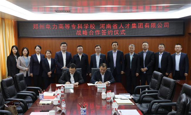 中新河南網(wǎng)10月13日電(李安杰) 10月12日,河南省人才集團有限公司黨委書記、總經(jīng)理張東紅,黨委委員、副總經(jīng)理王利軍一行到鄭州電力高等?茖W(xué)校調(diào)研,并簽訂戰(zhàn)略合作協(xié)議。校長楊建華、河南省電力公司高級專家(一級)鄧啟民、三級職員楊小琨、河南省電力公司高級專家(二級)張勇,學(xué)校人力資源部、發(fā)展質(zhì)量部、招生就業(yè)處負(fù)責(zé)同志出席簽約儀式。